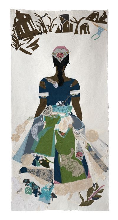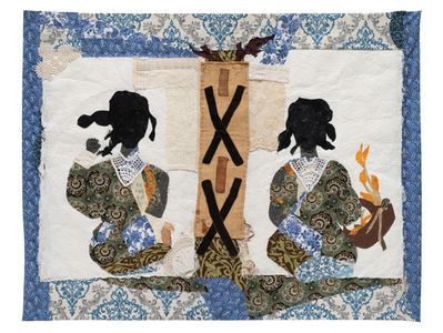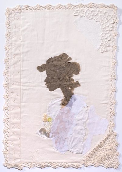 HEIRLOOMS assembles vintage linens, laces, cottons, and buttons in narratives that create a hybrid archive of Black life. Black mothers are remembered through stitchwork and piecing traditions that engage belonging, home, and the past we carry.